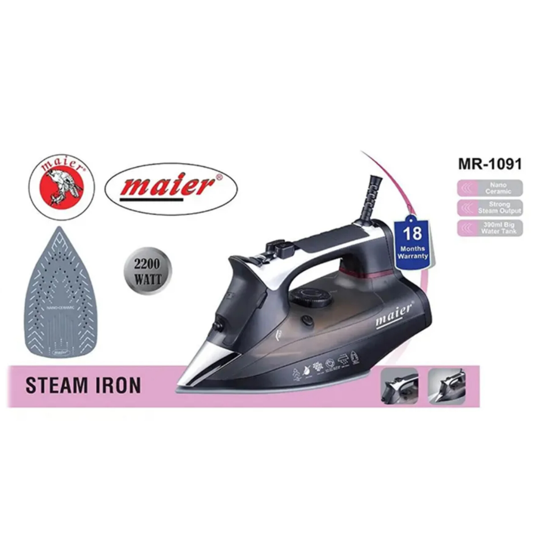 توان مصرفی واقعی: ۲۲۰۰ وات – بخار قوی و یکنواخت – خرید اتو بخار Maier MR‑1091 از مایر گناوه